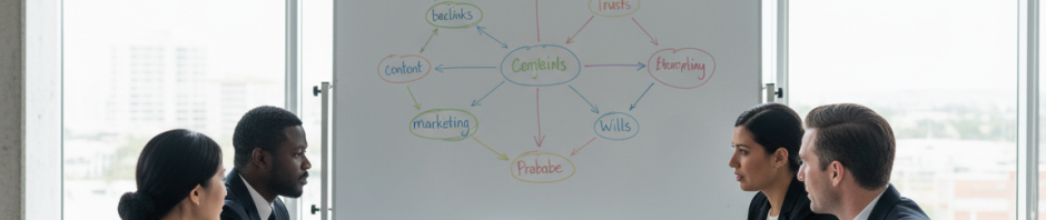 Organize content with descriptive headings and schema markup, such as LocalBusiness, LegalService, and FAQ. Strong internal links from pillar pages to service and local pages guide users and search engines. If technical demands or scale become difficult to manage, working with an estate planning SEO agency can help maintain consistency and quality.